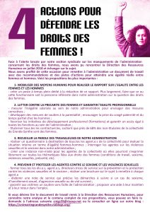 Voici les recommandations et les pistes d’actions que nous avons remises à la DRH en juillet 2018 concernant la question de la politique interne d’égalité femmes hommes.
